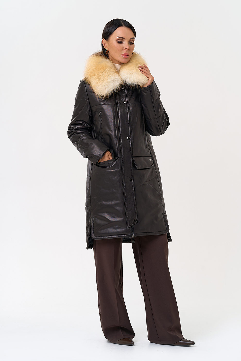 Пуховик из натуральной кожи