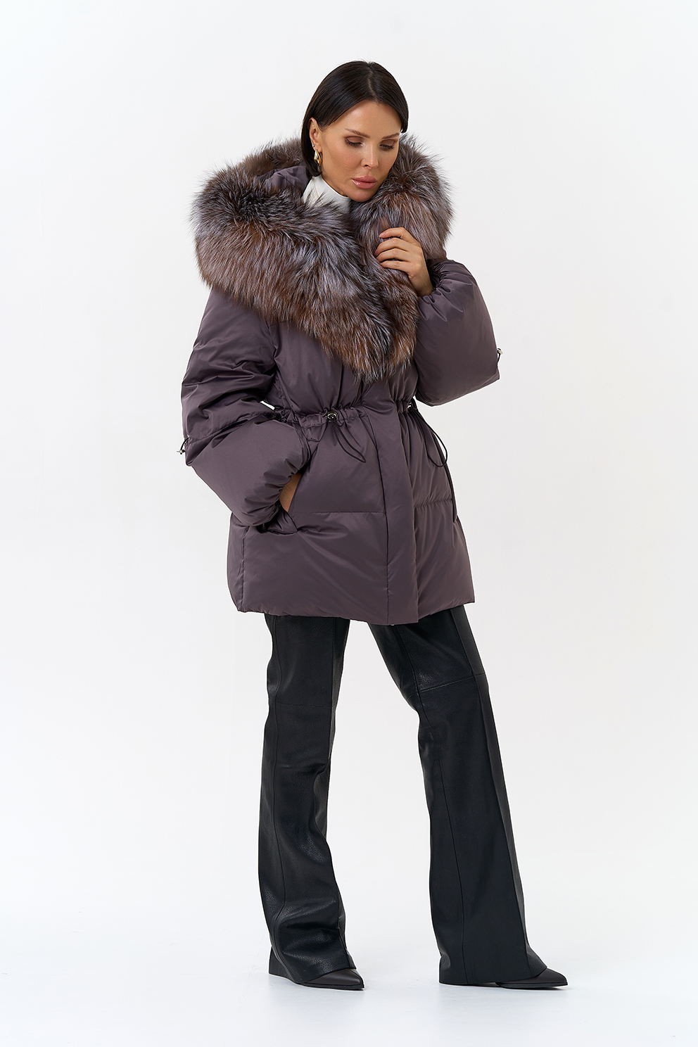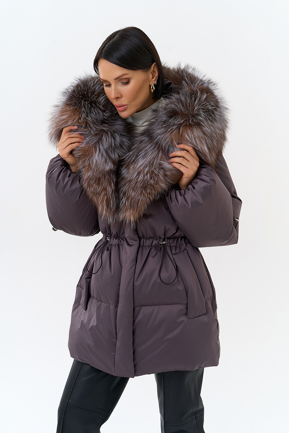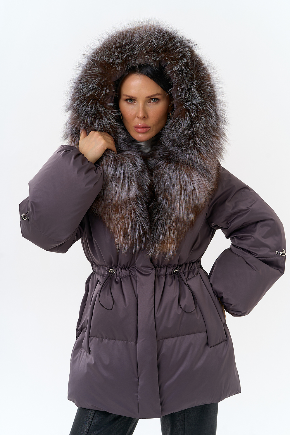 Крой воротника - капюшон, отделка блюфрост