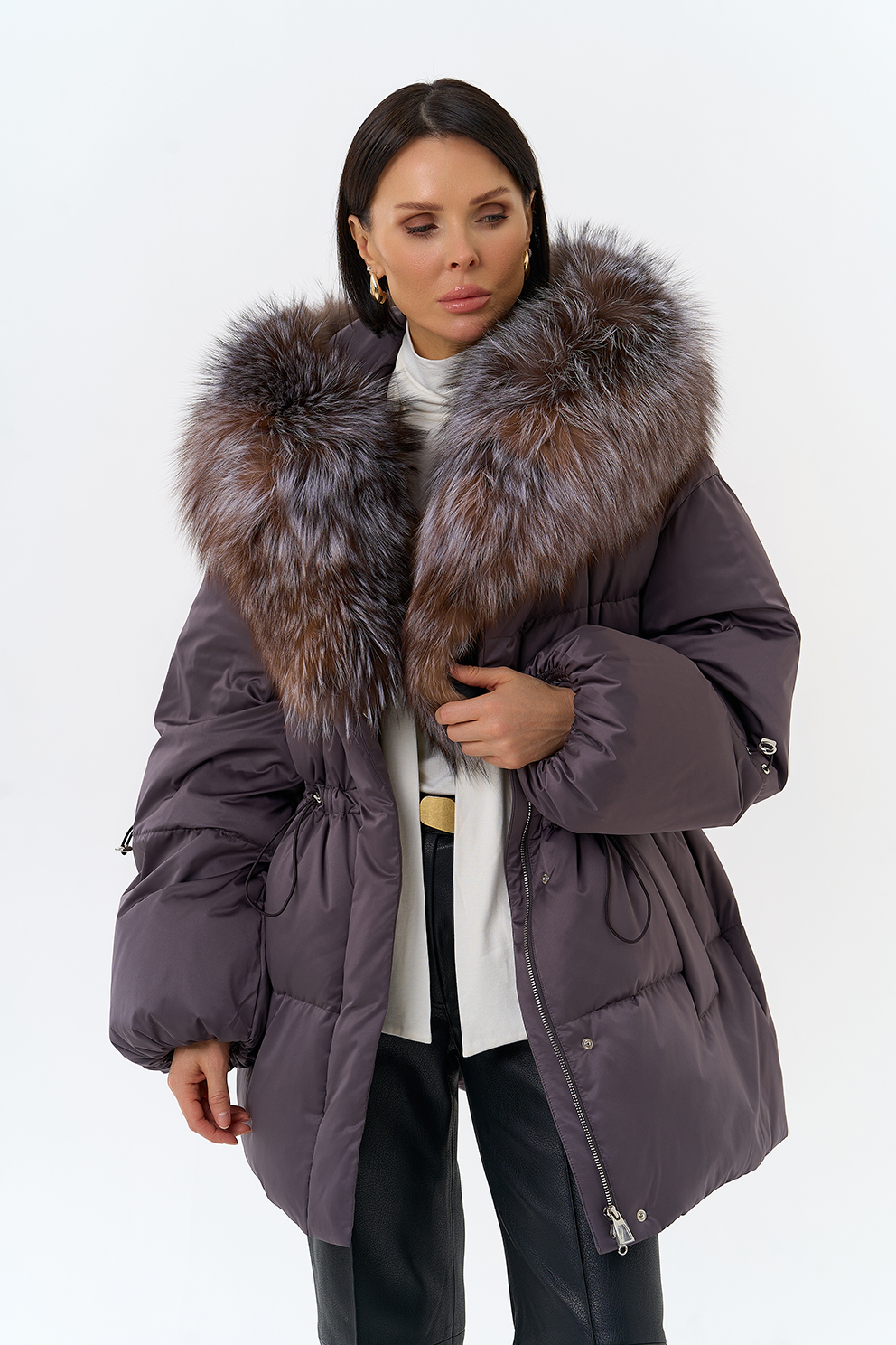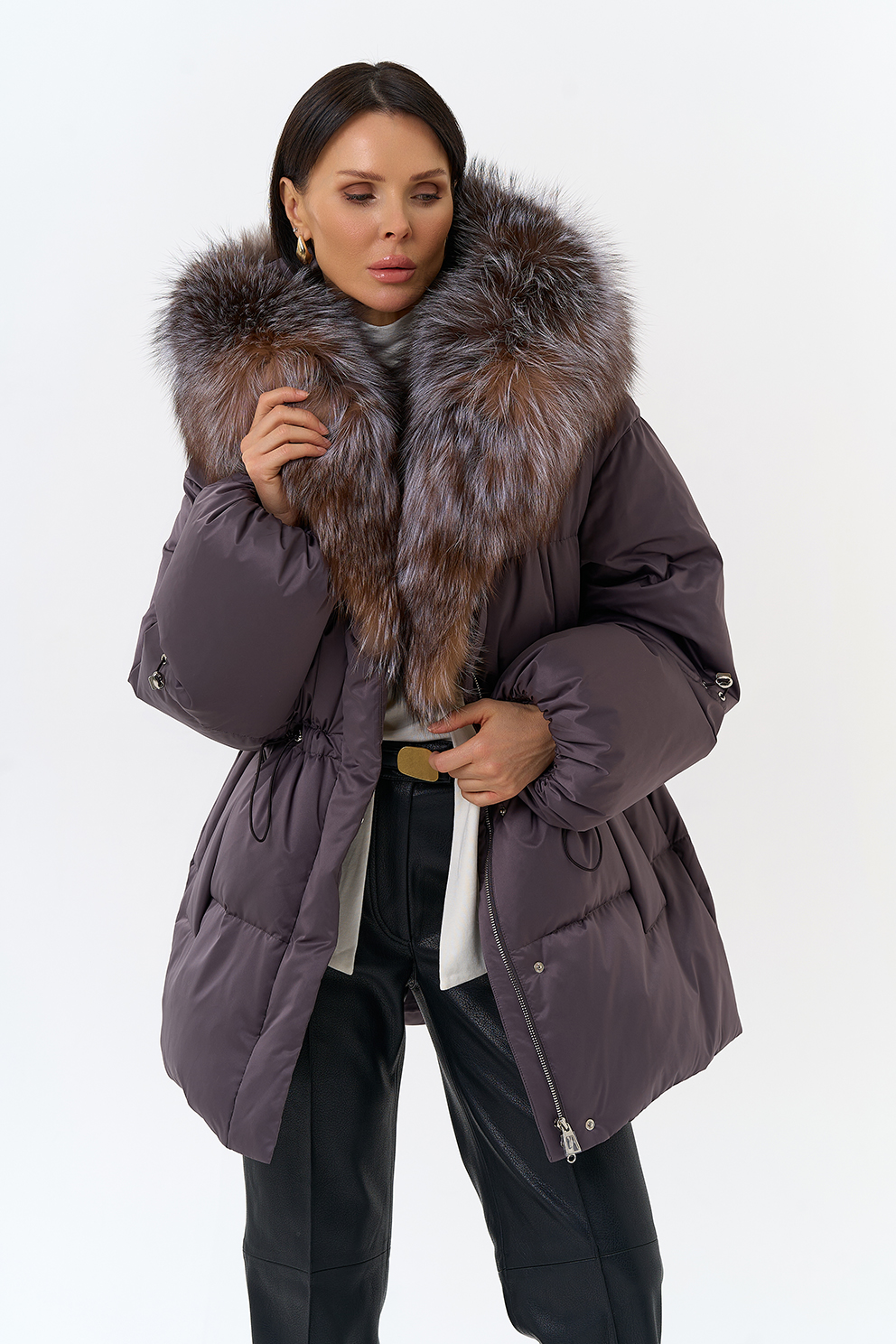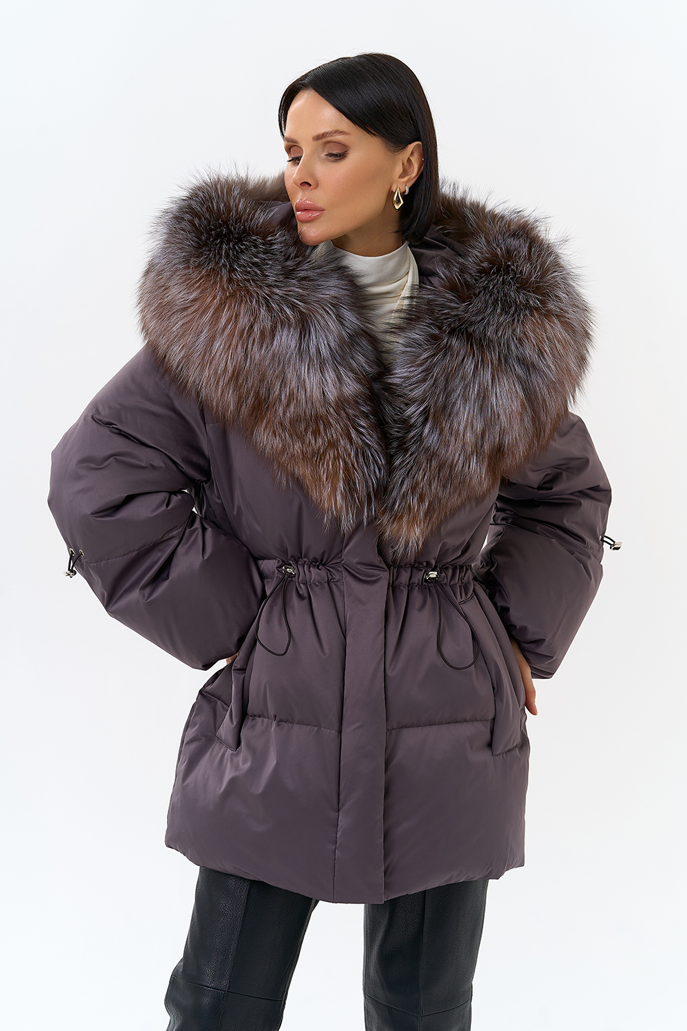 Крой воротника - капюшон, отделка блюфрост