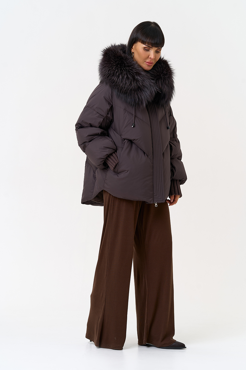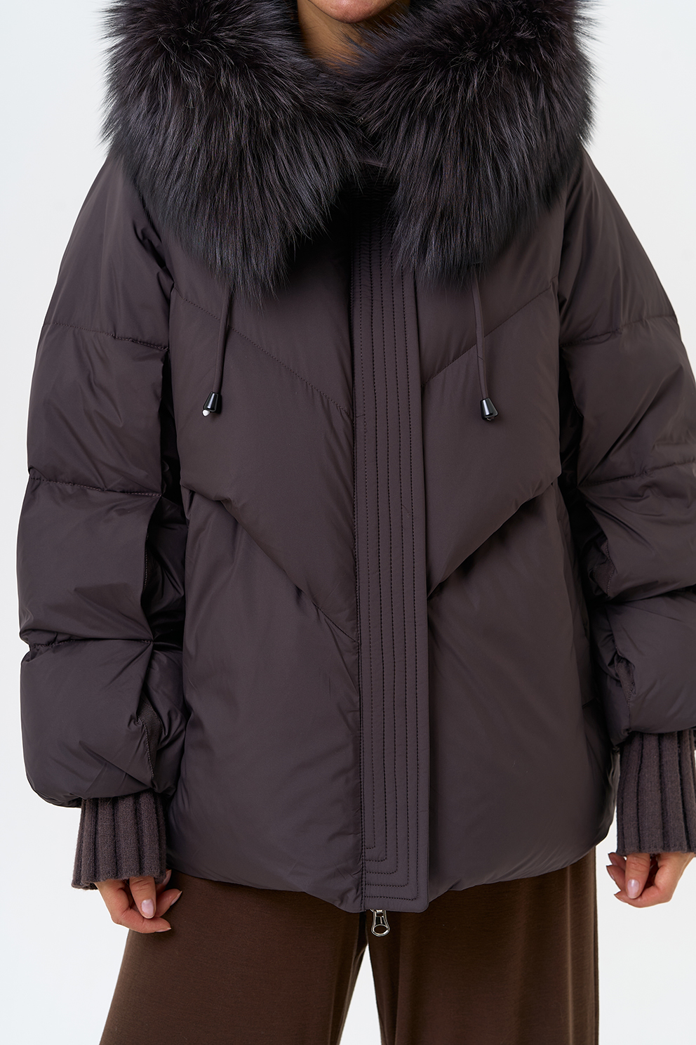 Крой воротника - капюшон, отделка чернобурка