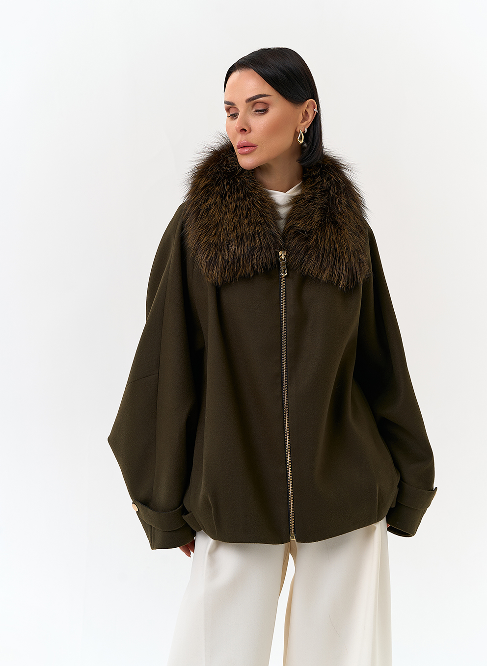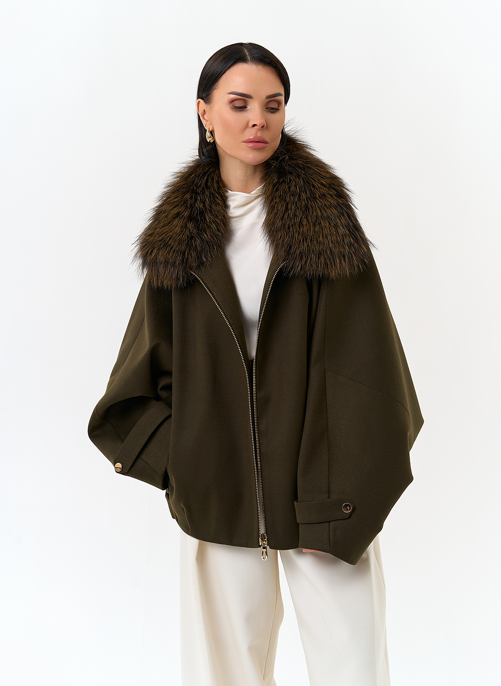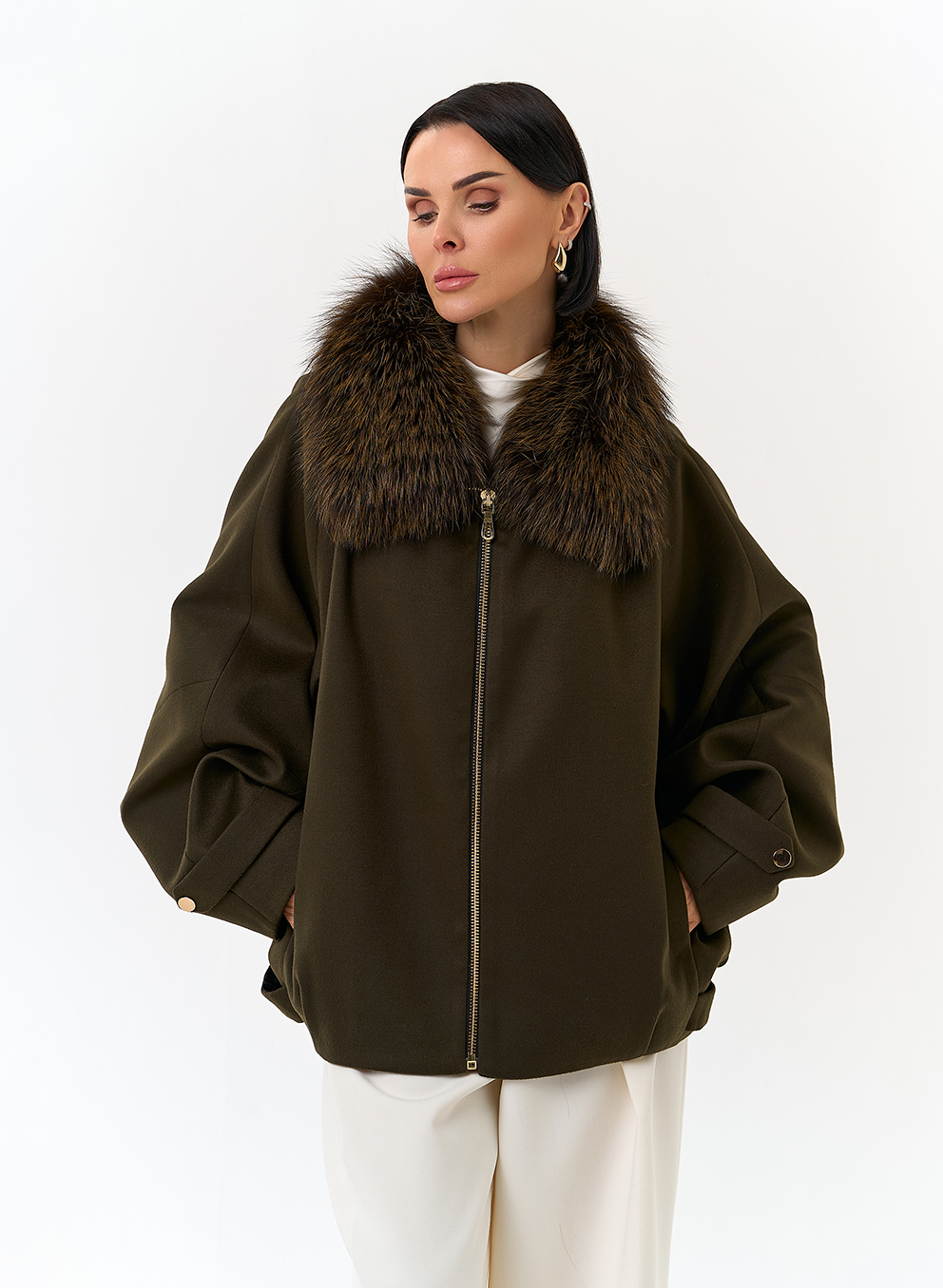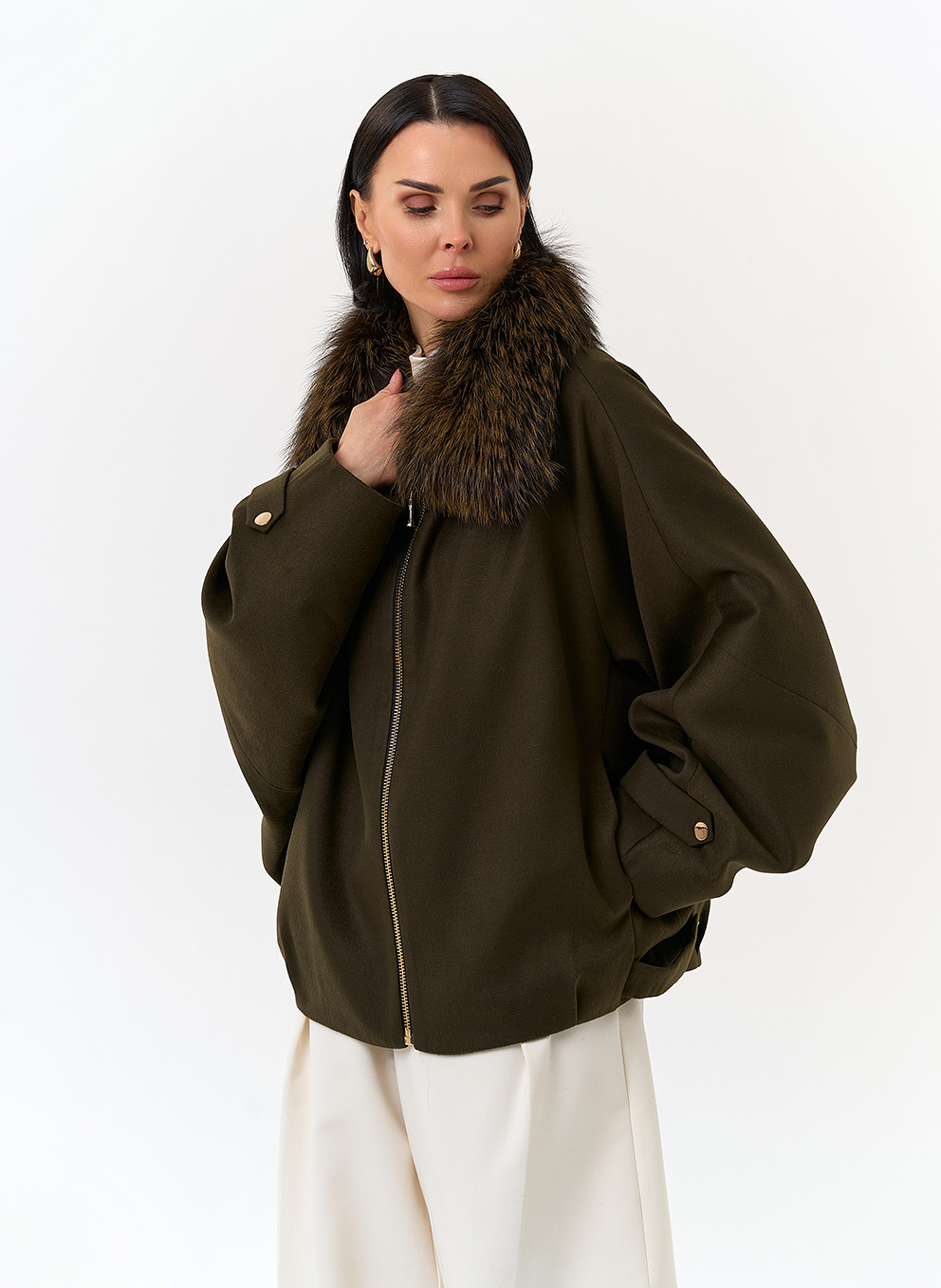 Отделка воротника - мех лисы, цвет зеленый