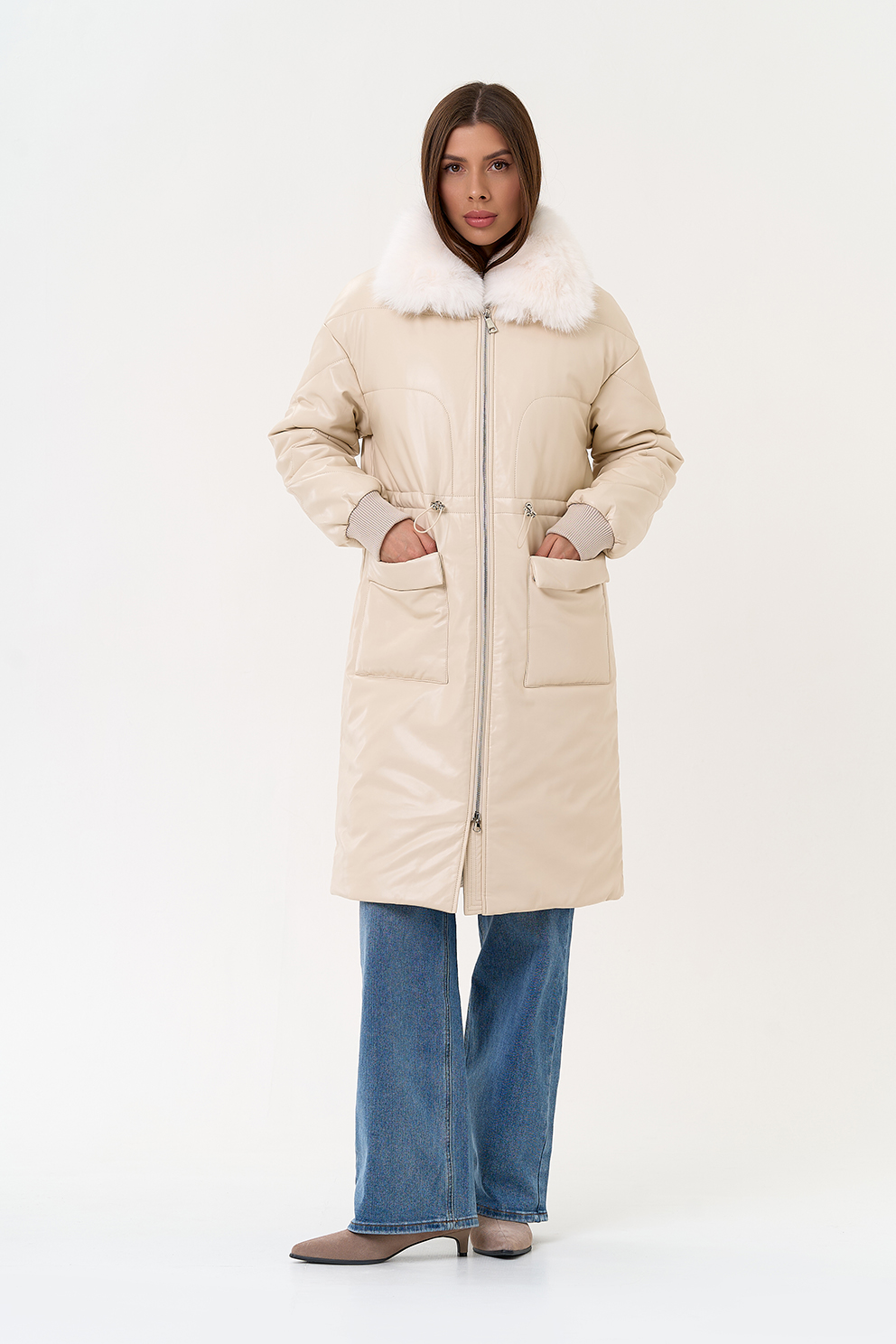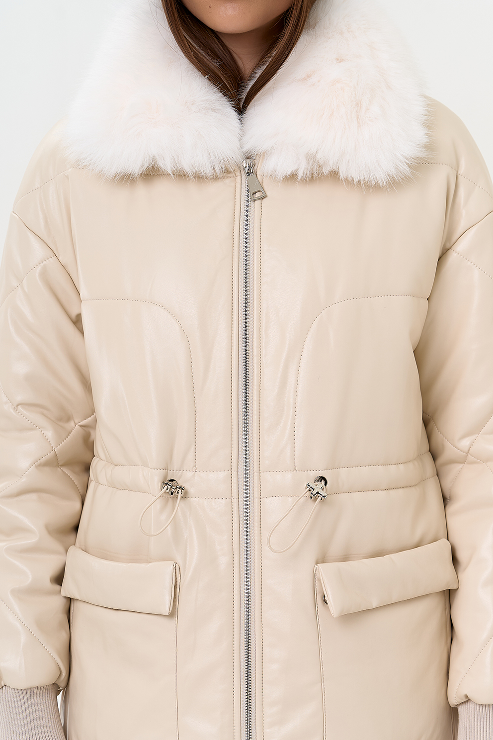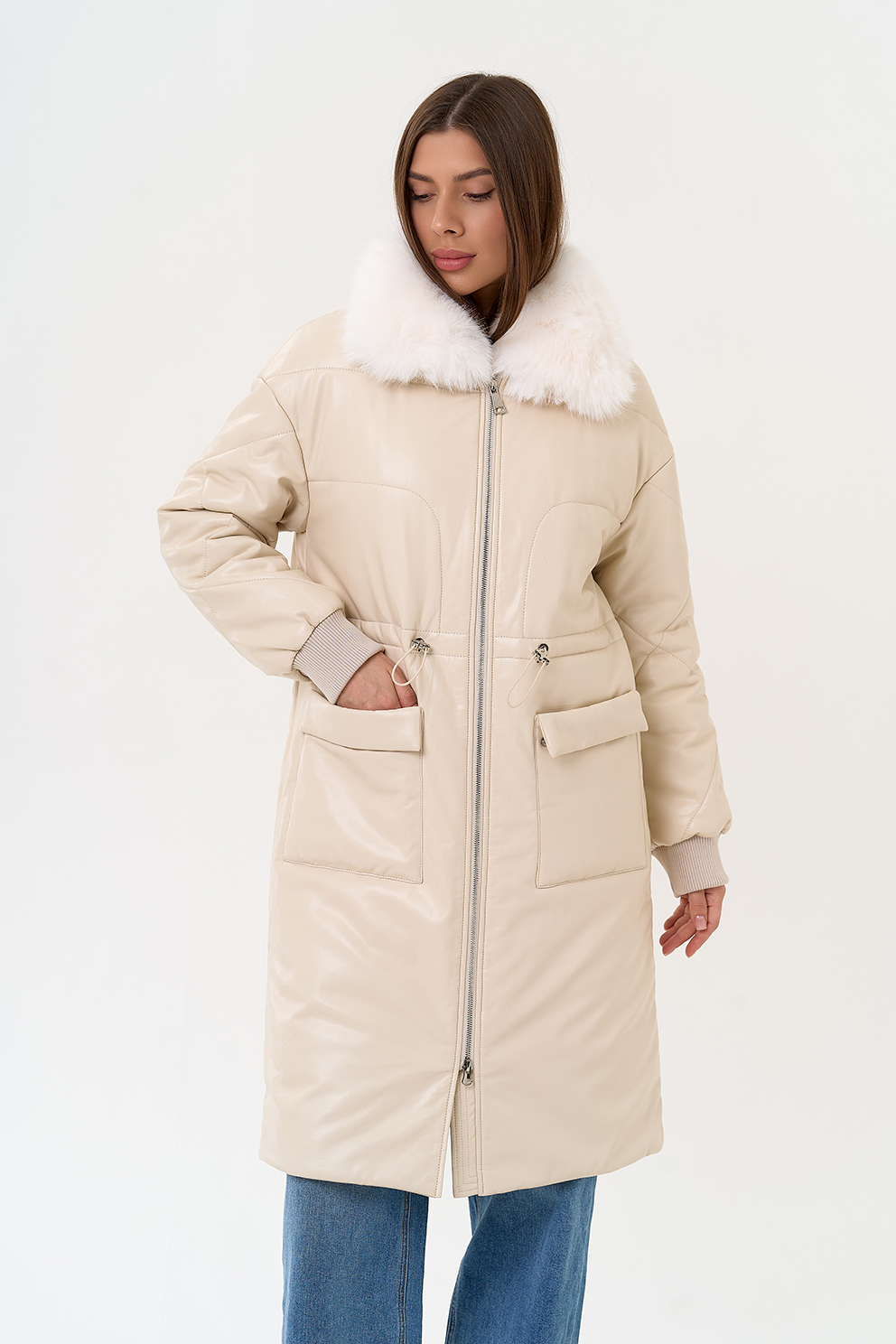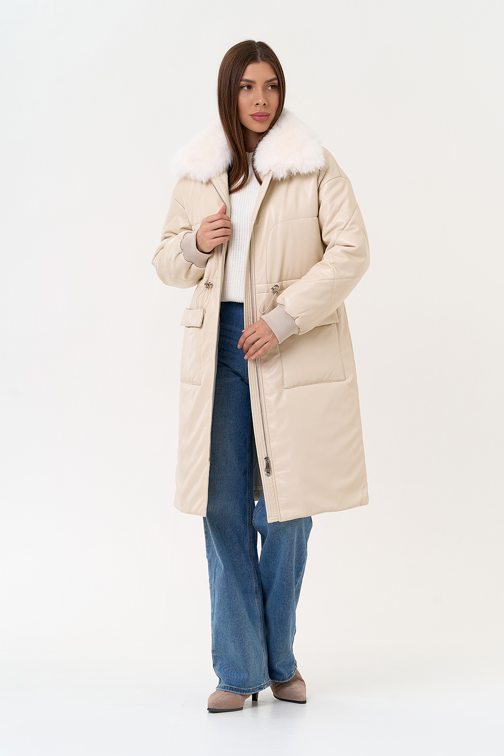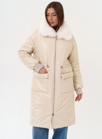 Отделка воротника - съемный эко мех, цвет белый